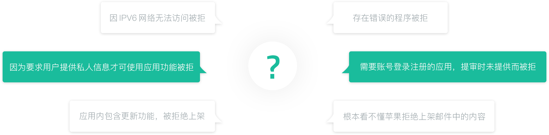 對 iOS 上架被拒的原因進行深度細化分析。根據應用功能、內容、材料、環境、新政策變動等,全面深入的規避被拒風險。